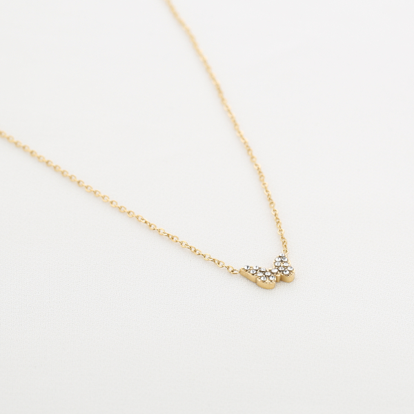 Deze prachtige ketting is gemaakt van stainless steel in combinatie met strass steentjes en een butterfly detail.