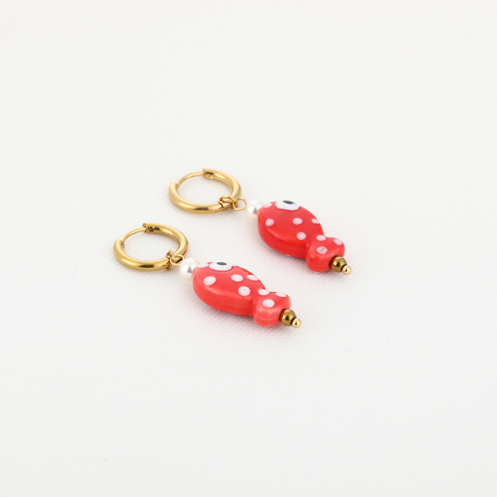 Oorbellen met een rood visje van stainless steel