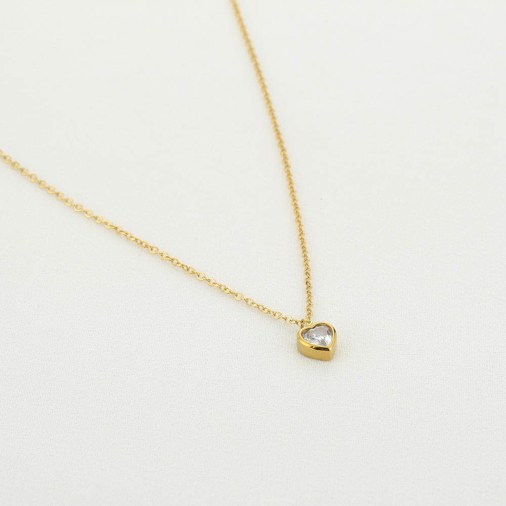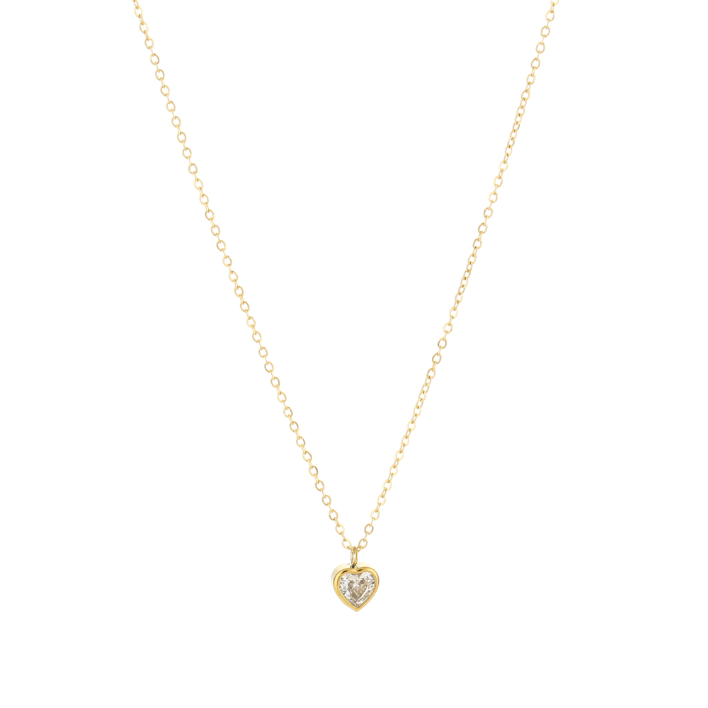 Ketting met zirkoon hartje in goud kleur van stainless steel