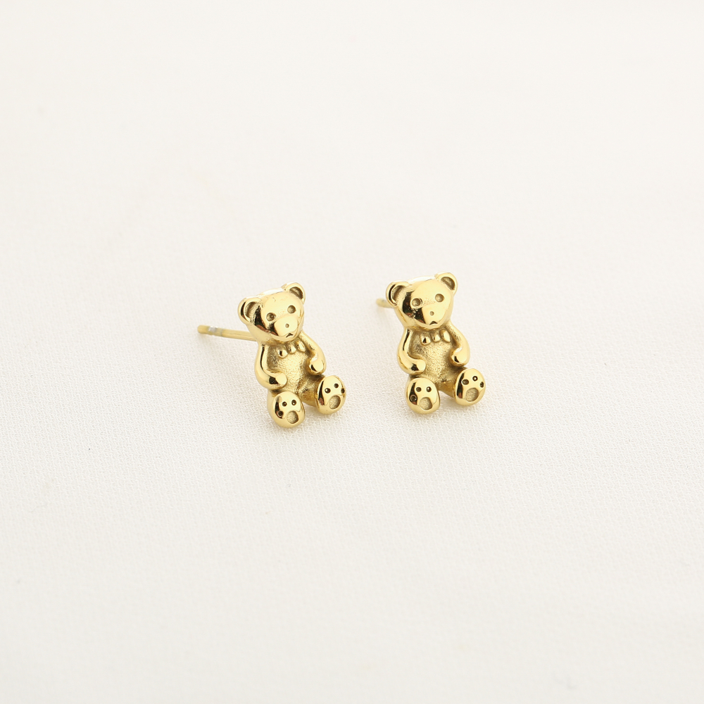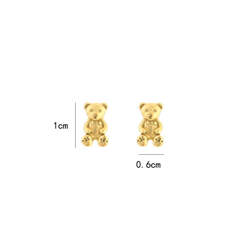 Oorbel met lief beertje voor kids in goud kleur van stainless steel