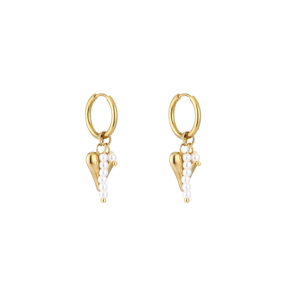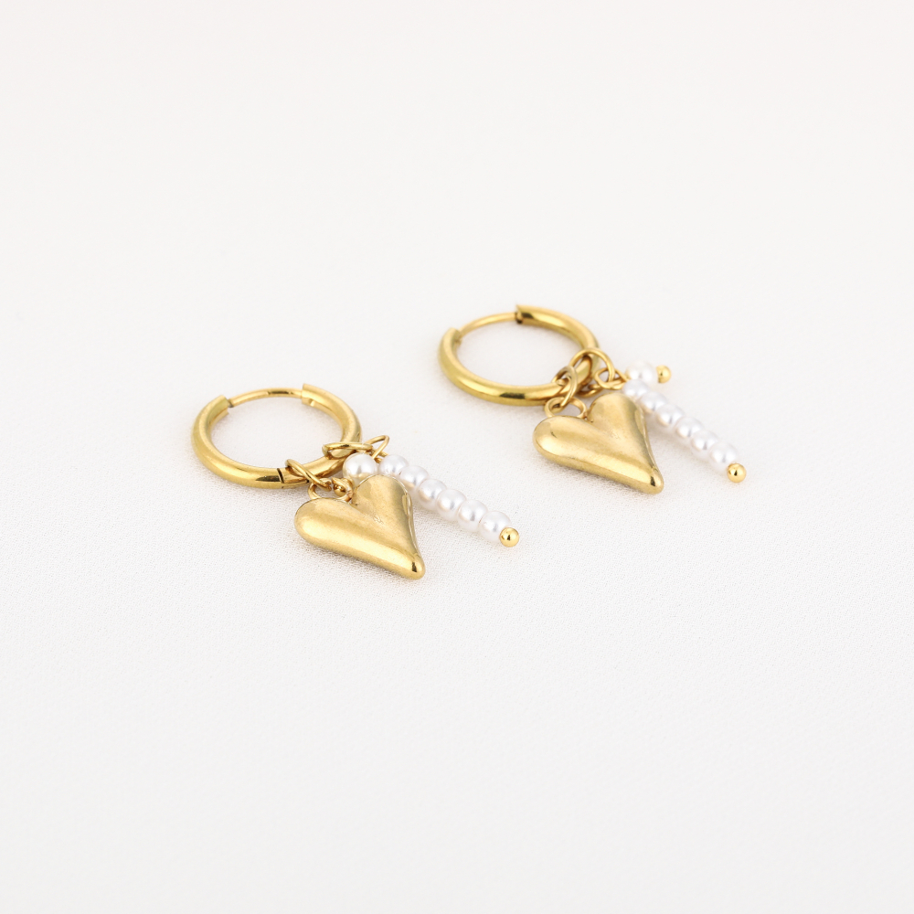 Oorbellen met hartje en kralen in goud kleur van stainless steel