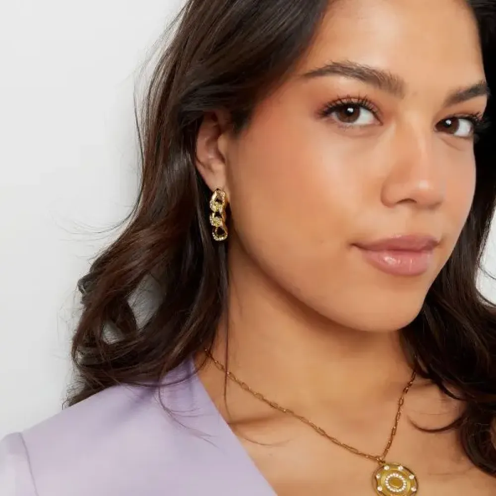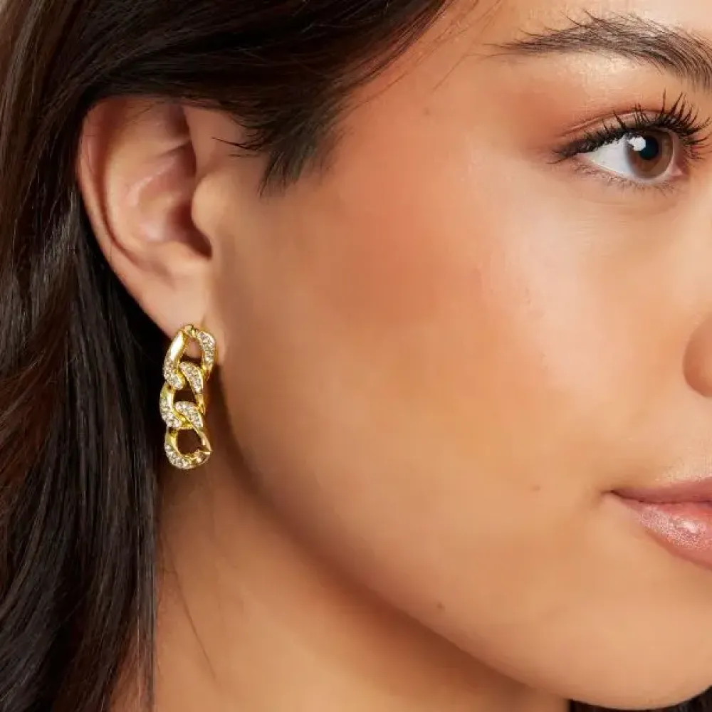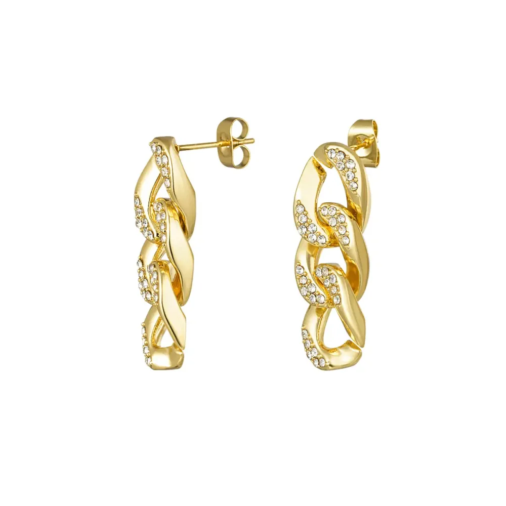 Hoe tof zijn deze prachtige gouden oorstekers met zirkoon in de vorm van schakels! Superleuk om deze oorbellen te dragen met meerdere kleine oorbellen!