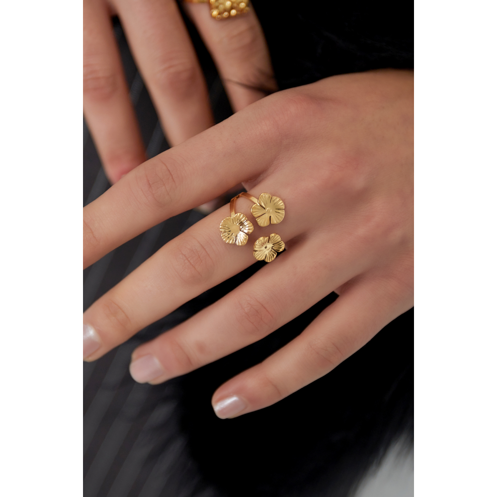Shop deze toffe goud gekleurde ring met leuke bloemen bij Pnar!