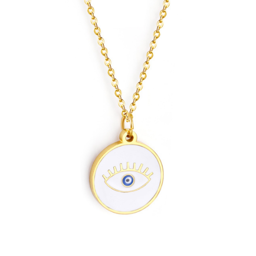 Hoe leuk is deze ketting! Zo leuk om met andere goud kleurige kettinkjes te combineren. Deze ketting heeft een ronde witte bedeltje met één oog in het midden. Wat helemaal leuk is, is dat je een gratis sieradendoosje krijgt waar je deze ketting in kan bewaren.